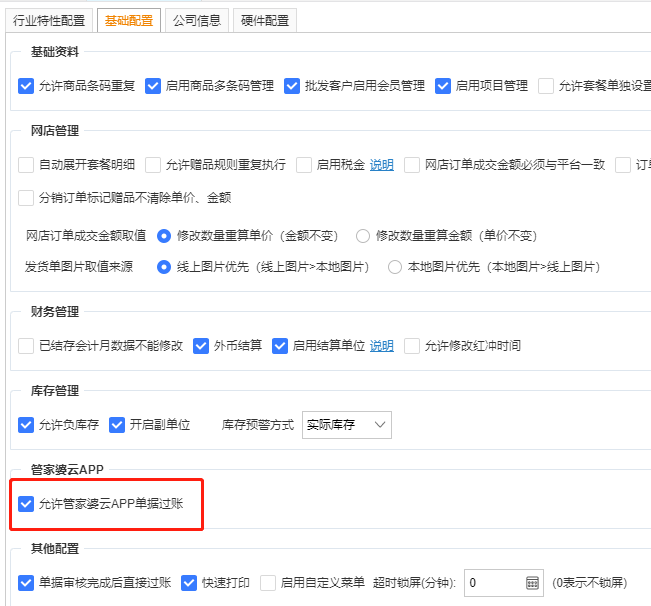 2. APP保存单据时,根据此配置结合单据是否满足过账条件,满足条件的直接完成单据过账,否则保存为草稿