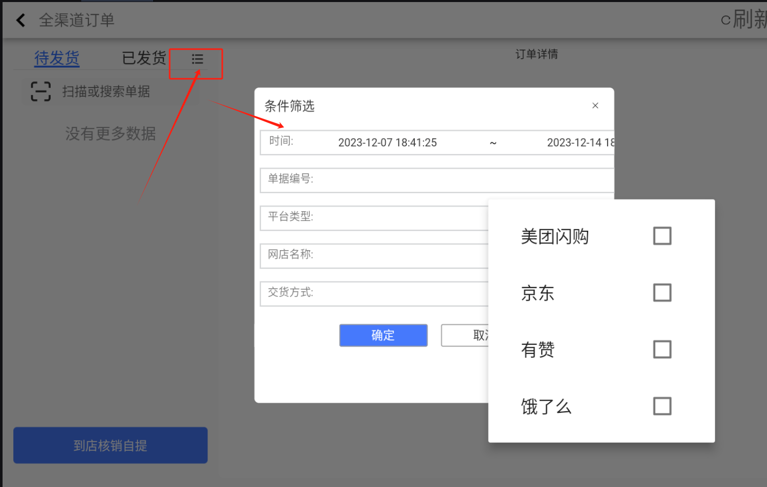 3、全渠道订单查询条件如下: