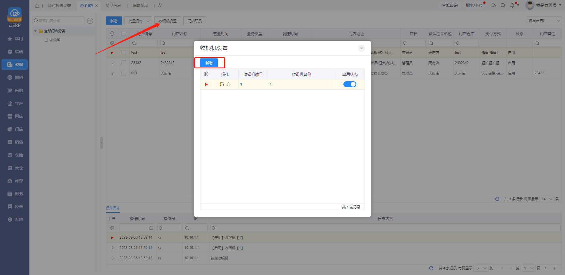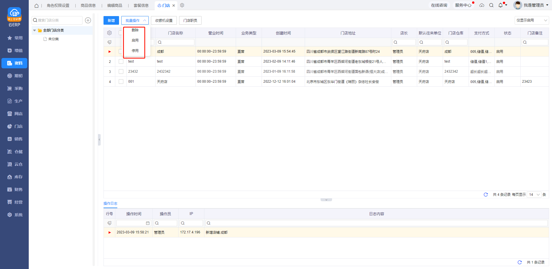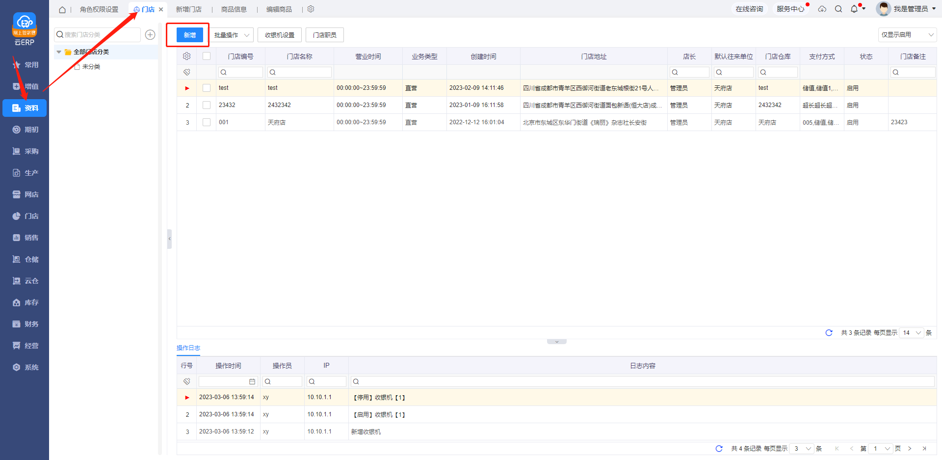 1、新增门店,在【资料--门店】中选择新增门店