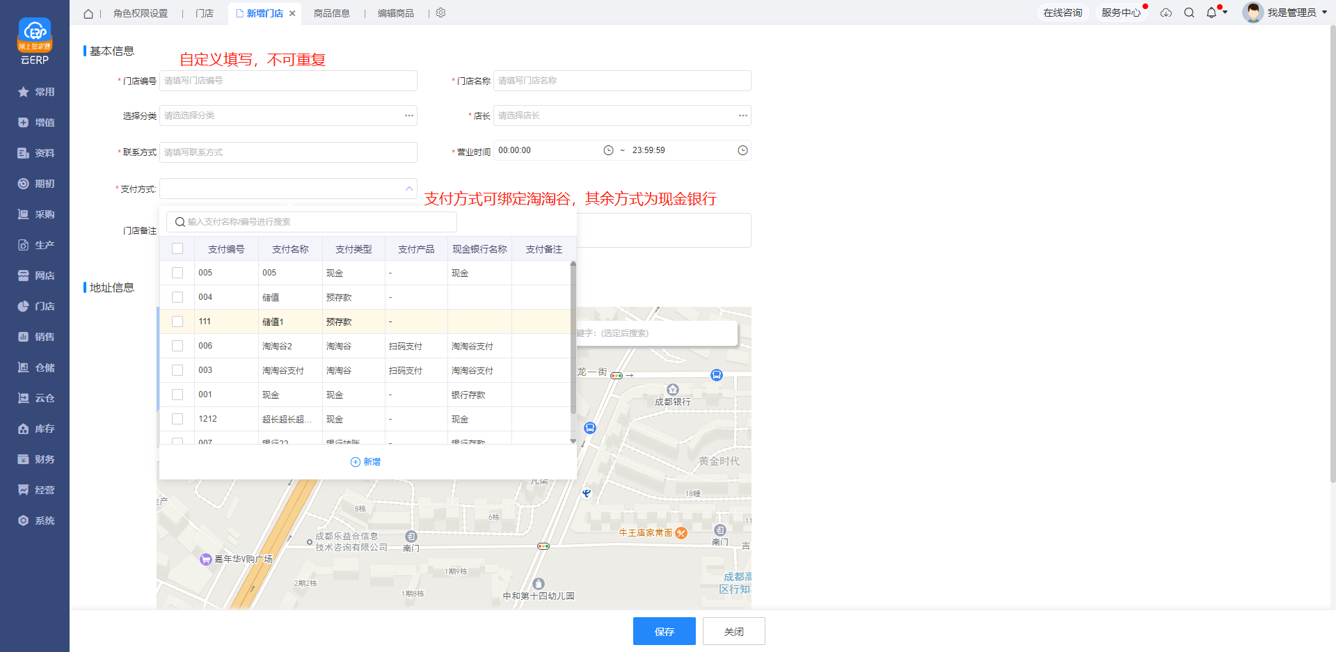 2、选择新增门店,填写门店相关信息