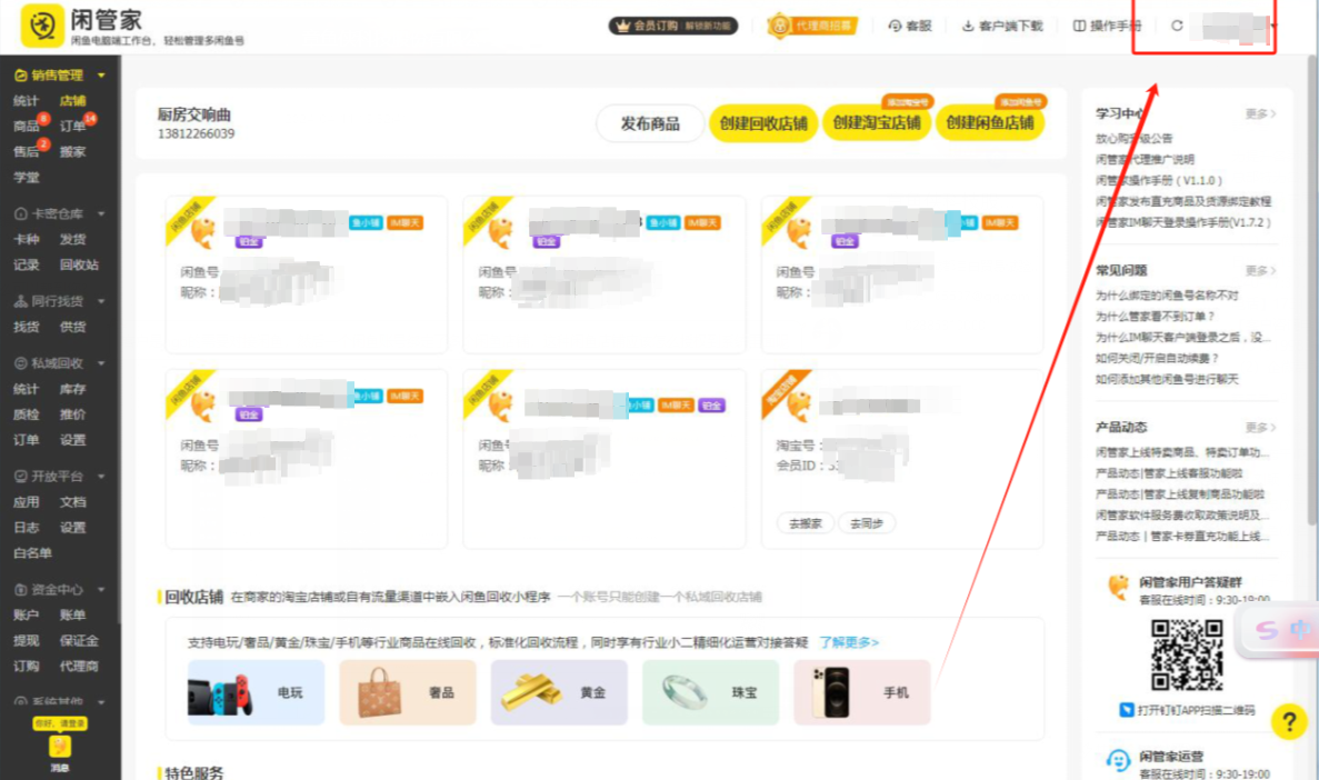 2.1 登录闲管家,右上角显示的用户名即为闲鱼用户名